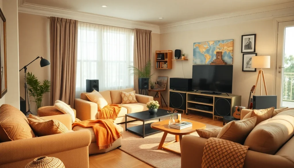 - Create focal points: Place your sofa or main seating area away from bare walls, ideally at an angle or with soft furnishings behind it. This reduces echo and creates a balanced sound environment.